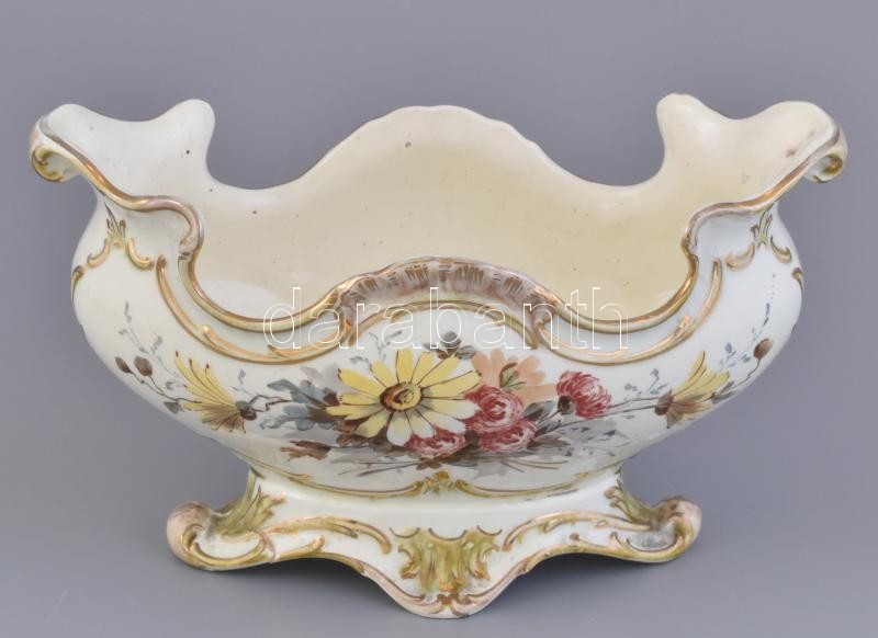 Leírás: Fajansz kínáló tál, Jelzés nélkül, kézzel festett, kopásokkal 30cm