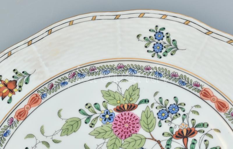Leírás: Herendi indiai kosár fantázia mintás lapos tányér. Kézzel festett, jelzett, hibátlan. d: 25 cm Fém fali akasztóval