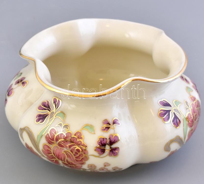 Zsolnay virágmintás kis porcelán kaspó, kézzel festett, jelzett, hibát... https://www.darabanth.com/hu/401-Gyorsarveres/401.0/Porcelan-keramia-uveg/Porcelan~500006/Zsolnay-viragmintas-kis-porcelan-kaspo-kezzel-festett-jelzett-hibatlan-12x12x6-5-cm~II2459909
