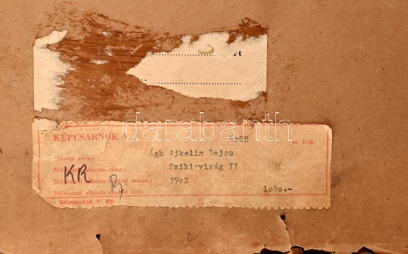 Ágh Ajkelin Lajos (1907-1995): Sziklavirág II, 1978. Vegyes technika, papír, jelzett. Hátoldalán Képcsarnok Vállalat címkéjével. Üvegezett keretben, 48×33 cm