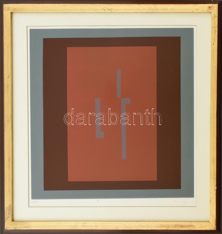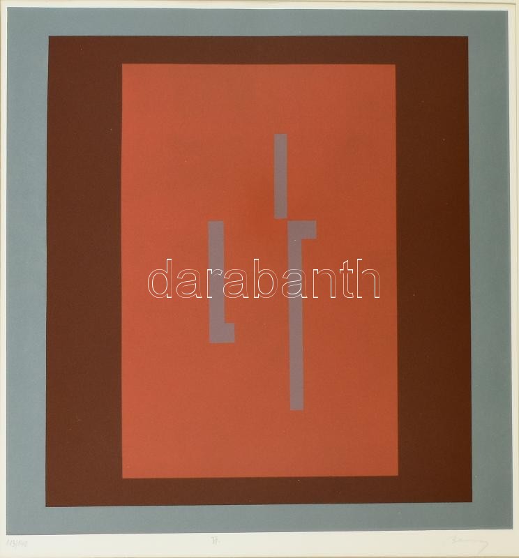 Barcsay Jenő (1900-1988): Geometrikus kompozíció. Szitanyomat, papír, jelzett, számozott (113/140). Az 1986-ban a Helikon kiadónál megjelent mappából. Üvegezett fa keretben, 32×37 cm
