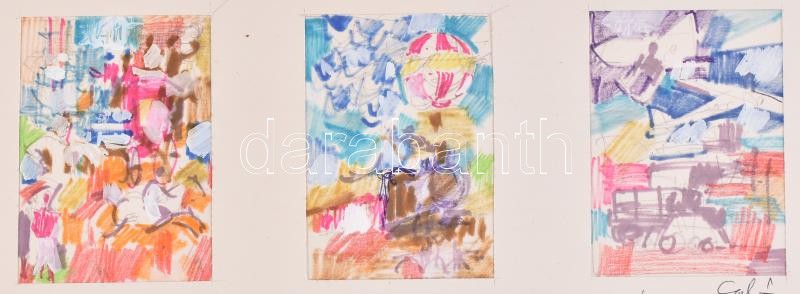 Leírás: Gulyás Dénes (1927-2003): 3 db vázlat. Filctoll, papír, jelzett, egy paszpartuban, 3x8x6 cm.