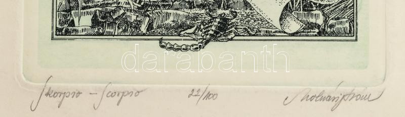 Molnár István (1947 - ) Skorpió-Scorpio. Rézkarc, papír. Jelzett. 21x1... https://www.darabanth.com/hu/402-Gyorsarveres/402.0/Festmenyek-es-grafikak/Festmenyek-es-grafikak~500001/Molnar-Istvan-1947-Skorpio-Scorpio-Rezkarc-papir-Jelzett-21x12cm~II2443263