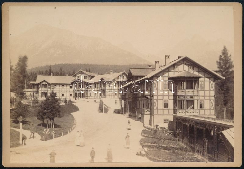 1888 Magas-Tátra, Alsó-Tátrafüred, Divald Károly felvétele, keményhátú fotó / Hohe Tatra, Bad Unterschmeks / Vysoké Tatry, Dolný Smokovec, Divald photo, 16x11 cm