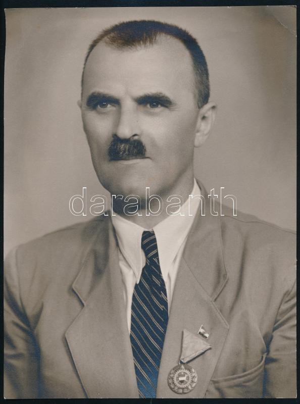 Férfi kiváló dolgozó jelvénnyel, fotó Paul fotószalonból, sarkain töré... https://www.darabanth.com/hu/402-Gyorsarveres/402.0/Fotomuveszet/Foto~500021/Ferfi-kivalo-dolgozo-jelvennyel-foto-Paul-fotoszalonbol-sarkain-toresnyomok-23C39717-5-cm~II2471831