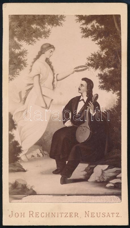 Leírás: cca 1880 Allegória, fetményről készült reprodukció Rechnitzer újvidéki műterméből, 10×6 cm