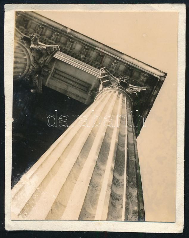 Leírás: cca 1930 Kinszki Imre (1901-1945) budapesti fotóművész hagyatékából jelzés nélküli vintage fotó (kőoszlop), 5,6x4,5 cm