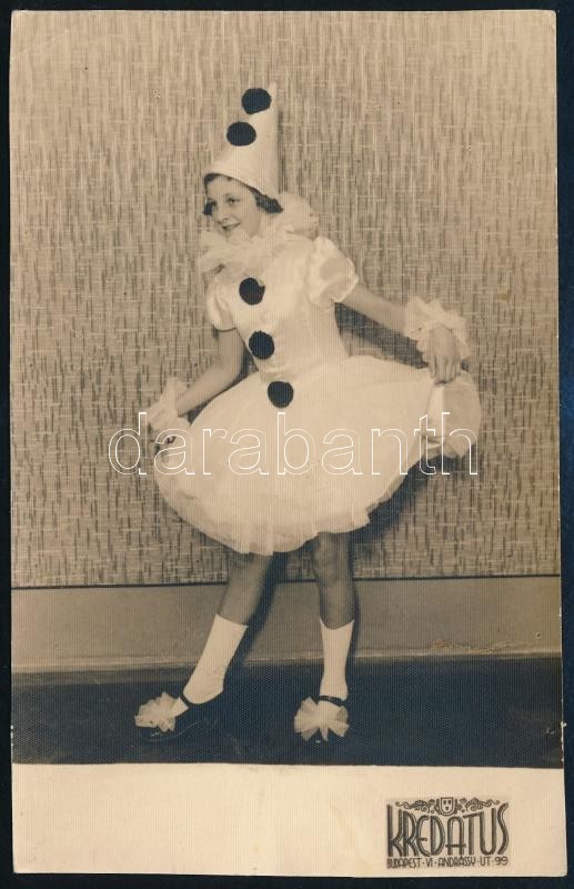 cca 1930 Kislány bohócjelmezben, fotólap Kredatus műterméből, 13×8 cm https://www.darabanth.com/hu/402-Gyorsarveres/402.0/Fotomuveszet/Foto~500021/cca-1930-Kislany-bohocjelmezben-fotolap-Kredatus-mutermebol-13C3978-cm~II2471791