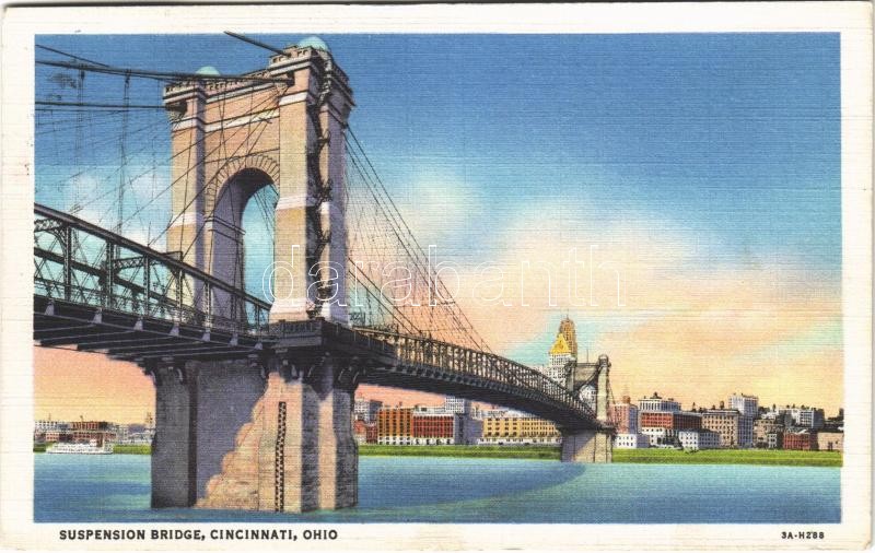 1933 Cincinnati (Ohio), Suspension Bridge https://www.darabanth.com/hu/402-Gyorsarveres/402.0/Kepeslapok/Amerikai-Egyesult-Allamok~1000018/1933-Cincinnati-Ohio-Suspension-Bridge~II2348091