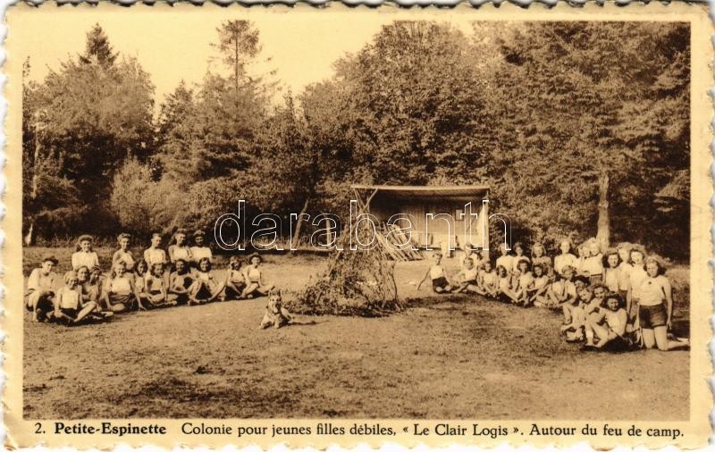 Petite-Espinette, Colonie pour jeunes filles débiles, "Le Clair Logis", Autour du feu de camp / camp for girls with intellectual disabilites, campfire (EK)