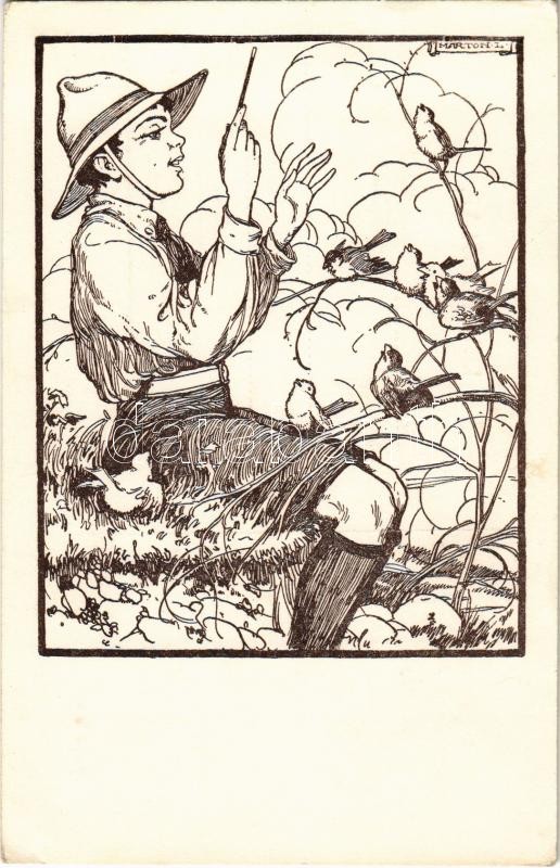 Leírás: Cserkész művészlap. A "Magyar Jövő" kiadása / Hungarian boy scout art postcard s: Márton L. (EK)