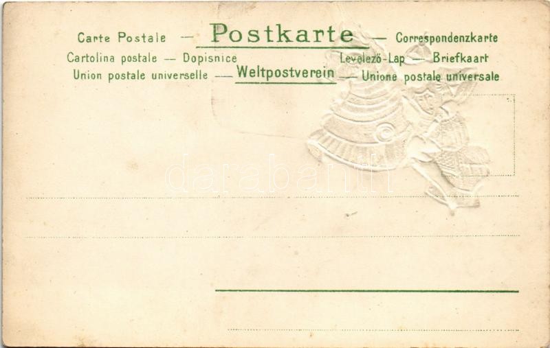 Leírás: St. Georg / Szent György, a cserkészek védőszentje / Saint George, the patron saint of scouting. Emb. golden litho (apró lyuk / tiny pinhole)