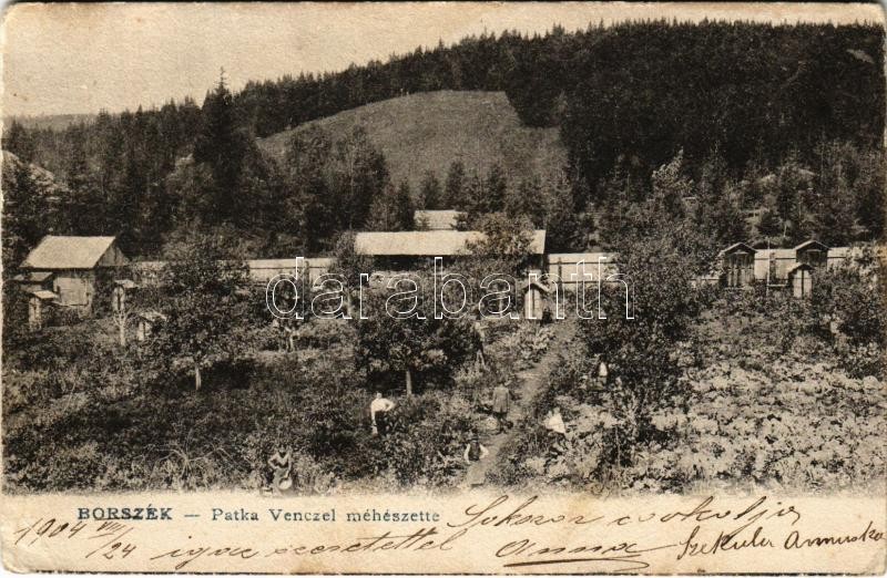 1904 Borszék, Borsec; Patka Vencel méhészete / apiary, beehives (EK) https://www.darabanth.com/hu/402-Gyorsarveres/402.0/Kepeslapok/Erdely~1000006/1904-Borszek-Borsec-Patka-Vencel-meheszete-apiary-beehives-EK~II2470856