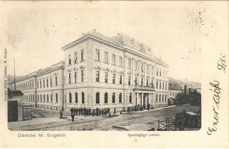 Leírás: 1904 Máramarossziget, Sighetu Marmatiei; Igazságügyi palota. Berger Miksa kiadása / palace of justice
