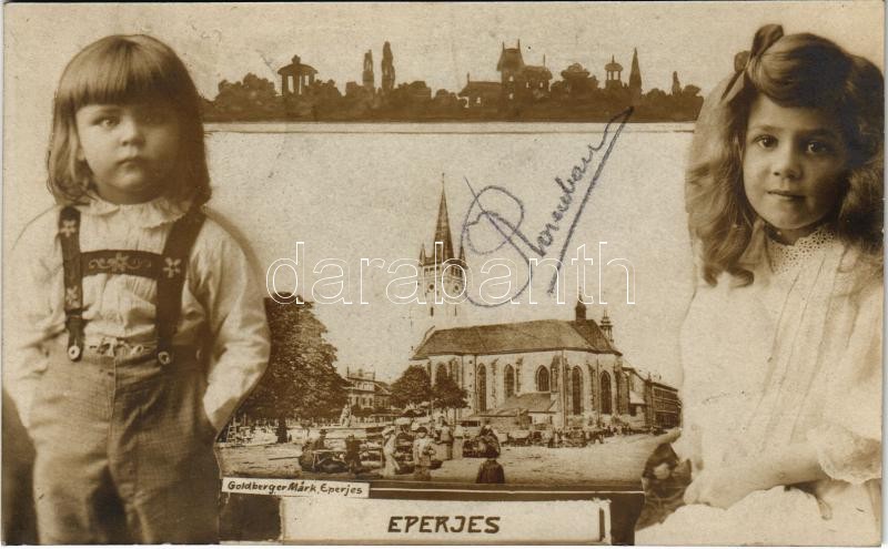 1909 Eperjes, Presov; Fő tér, piac, templom. Montázs gyerekekkel, Gold... https://www.darabanth.com/hu/402-Gyorsarveres/402.0/Kepeslapok/Felvidek~1000007/1909-Eperjes-Presov-Fo-ter-piac-templom-Montazs-gyerekekkel-Goldberger-Mark-kiadasa-mar~II2471352