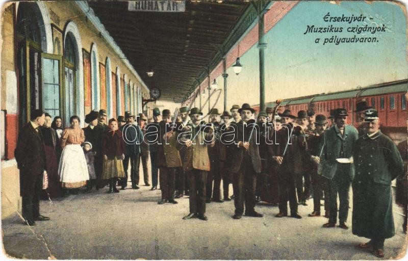 1914 Érsekújvár, Nové Zámky; Muzsikus cigányok a pályaudvaron, vasútál... https://www.darabanth.com/hu/402-Gyorsarveres/402.0/Kepeslapok/Felvidek~1000007/1914-Ersekujvar-Nove-Zamky-Muzsikus-ciganyok-a-palyaudvaron-vasutallomas-Gypsy-band-a~II2472233