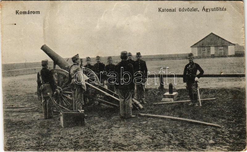 1914 Komárom, Komárnó; Katonai üdvözlet, ágyútöltés / K.u.k. Feldartil... https://www.darabanth.com/hu/402-Gyorsarveres/402.0/Kepeslapok/Felvidek~1000007/1914-Komarom-Komarno-Katonai-udvozlet-agyutoltes-Kuk-Feldartillerie-artillery-sol~II2471394