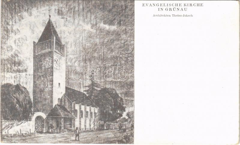 Bazin, Bösing, Bözing, Pezinok; Evangelische Kirche in Grünau. Architekten Theisz-Jaksch / Evangélikus templom Grinádban / Lutheran church in Grinava (EK)