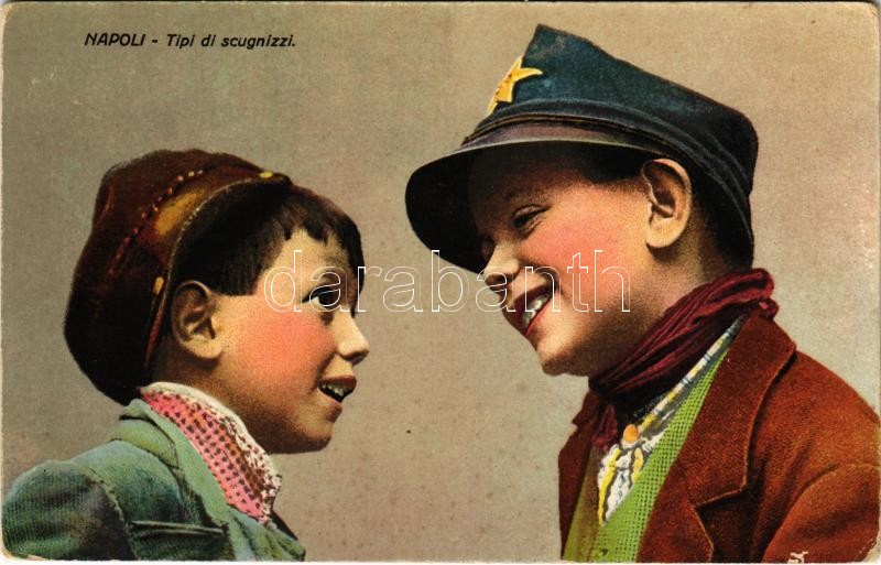 Napoli, Naples; Tipi di scugnizzi / Italian folklore, children (EK) https://www.darabanth.com/hu/402-Gyorsarveres/402.0/Kepeslapok/Folklor~1000088/Napoli-Naples-Tipi-di-scugnizzi-Italian-folklore-children-EK~II2469744