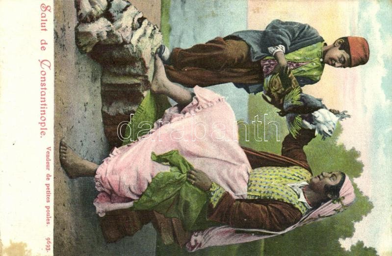 Salut de Constantinople, Vendeur de petites poules / poultry vendor, T... https://www.darabanth.com/hu/402-Gyorsarveres/402.0/Kepeslapok/Folklor~1000088/Salut-de-Constantinople-Vendeur-de-petites-poules-poultry-vendor-Turkish-folklore-fl~II2059325