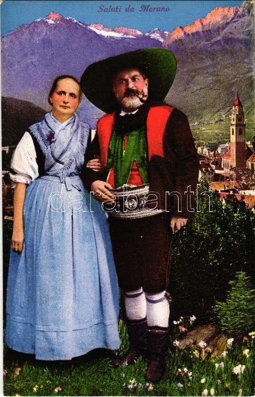 Saluti da Merano (Südtirol) / South Tyrolean folklore, couple from Mer... https://www.darabanth.com/hu/402-Gyorsarveres/402.0/Kepeslapok/Folklor~1000088/Saluti-da-Merano-Sudtirol-South-Tyrolean-folklore-couple-from-Merano~II2469746