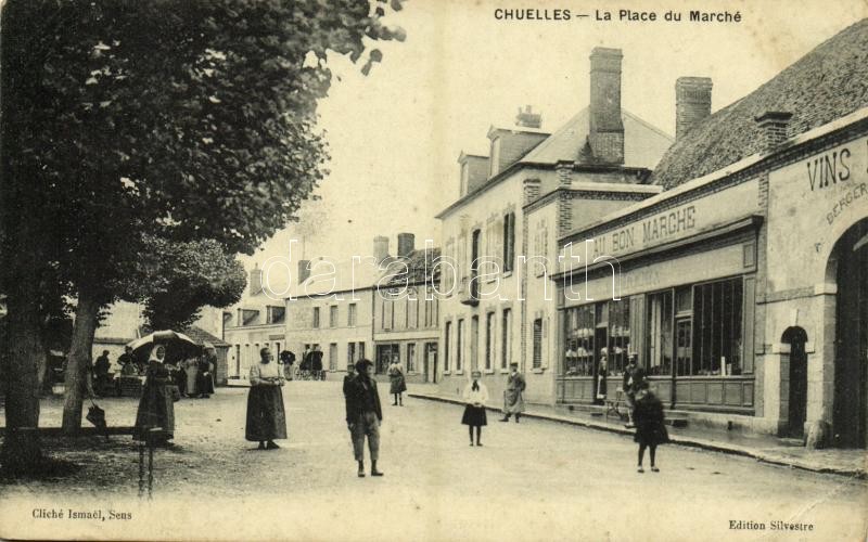 Leírás: Chuelles, La Place du Marché, Au Bon Marché / market square (EK)