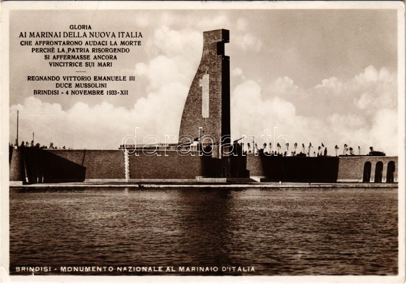 Brindisi, Monumento Nazionale al Marinaio d'Italia / Italian Navy... https://www.darabanth.com/hu/402-Gyorsarveres/402.0/Kepeslapok/Hadihajo~1000074/Brindisi-Monumento-Nazionale-al-Marinaio-dItalia-Italian-Navy-Regia-Marina-WWI-hero-mariners~II2470998