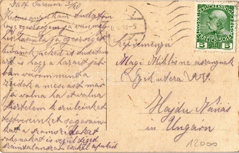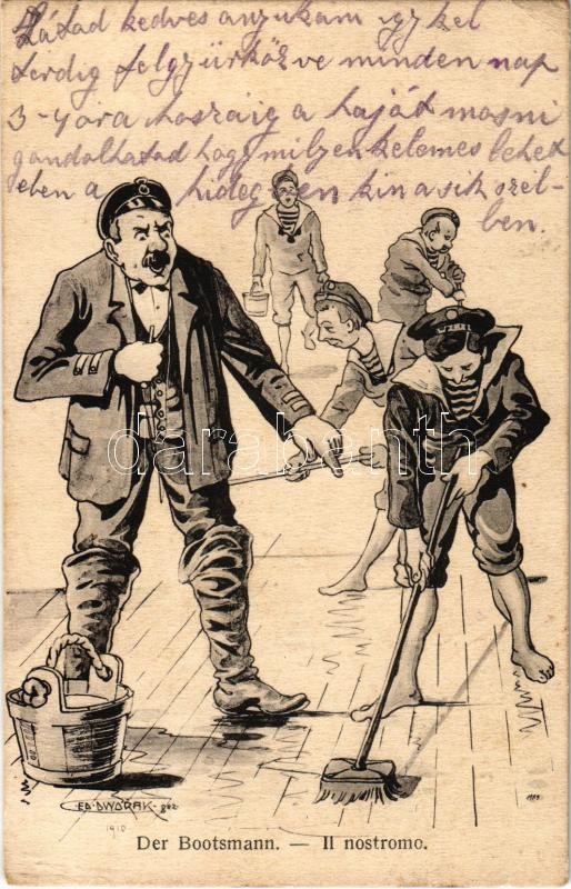 Der Bootsmann / Il nostromo / K.u.K. Kriegsmarine Matrose / Austro-Hungarian Navy mariner humour art postcard. A. Bonetti, Pola 1910. s: Ed. Dworak (EK)