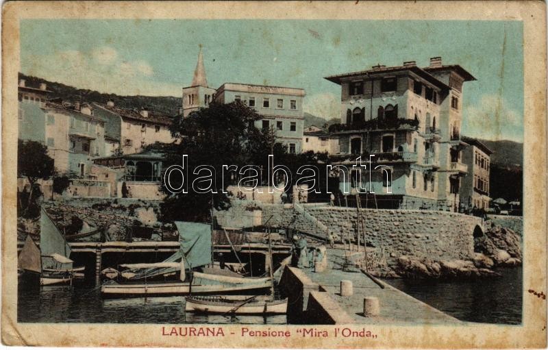 Leírás: Lovran, Lovrana, Laurana; Pensione "Mira l'Onda" / hotel, boats (ragasztónyom / glue marks)