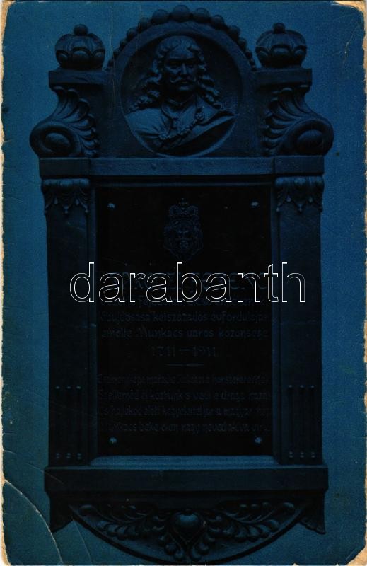 Leírás: Munkács, Mukacheve, Mukachevo, Mukacevo; II. Rákóczi Ferenc emléktáblája. Vasarkövy J. kiadása / Francis II Rákóczi monument (EB)