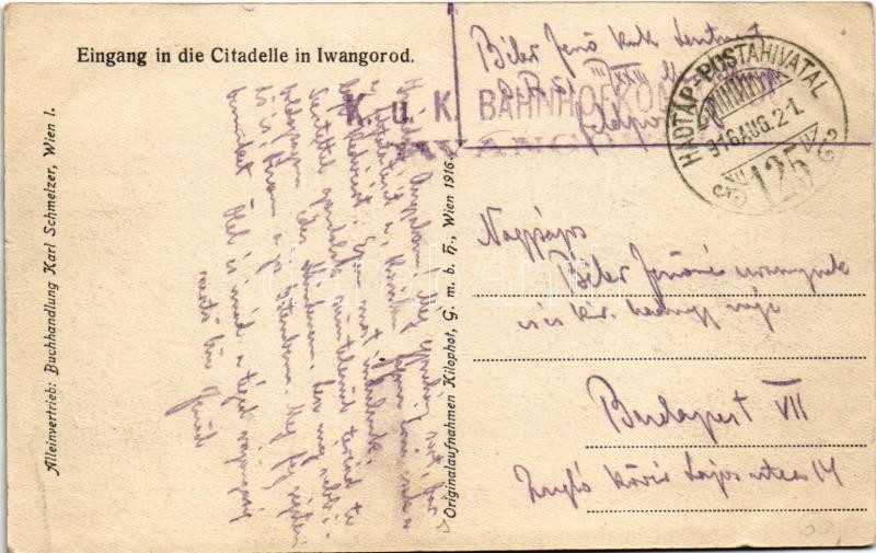 1916 Eingang in die Citadelle in Iwangorod / WWI Austro-Hungarian K.u.K. military, entrance of the Ivangorod Fortress + "K.u.K. Bahnhofkommando Iwangorod" (EK)