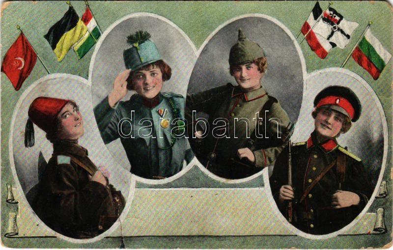 1916 WWI Austro-Hungarian K.u.K. military, Central Powers propaganda w... https://www.darabanth.com/hu/402-Gyorsarveres/402.0/Kepeslapok/Katonai~1000083/1916-WWI-Austro-Hungarian-KuK-military-Central-Powers-propaganda-with-flags-and-ladies-in-soldie~II2471020