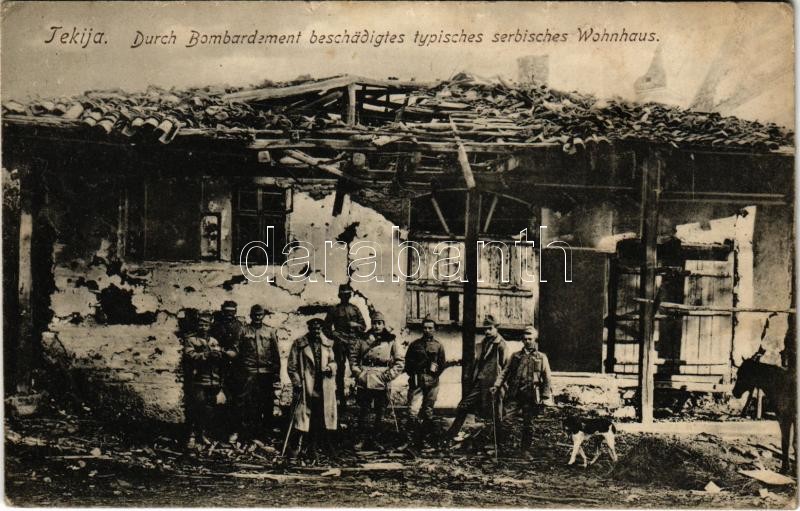 Tekija (Kladovo), Durch Bombardement beschädigtes typisches serbisches... https://www.darabanth.com/hu/402-Gyorsarveres/402.0/Kepeslapok/Katonai~1000083/Tekija-Kladovo-Durch-Bombardement-beschadigtes-typisches-serbisches-Wohnhaus-Typical-Serbian-h~II2471715
