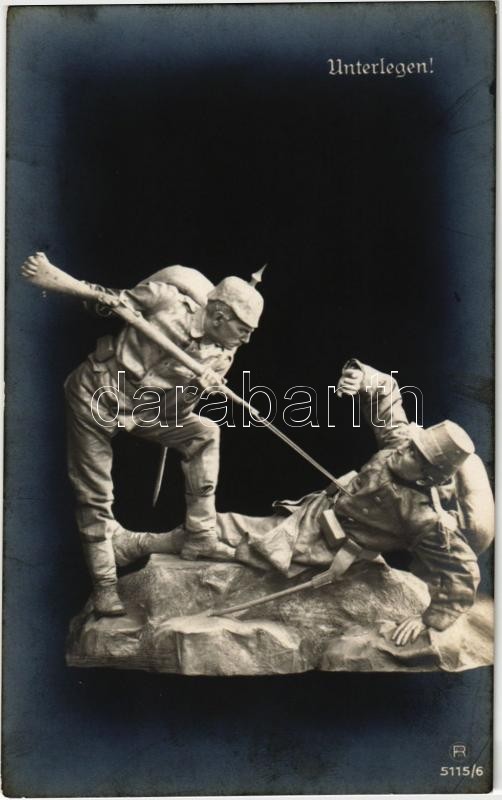 Unterlegen! / WWI German military sculpture https://www.darabanth.com/hu/402-Gyorsarveres/402.0/Kepeslapok/Katonai~1000083/Unterlegen-WWI-German-military-sculpture~II2471451