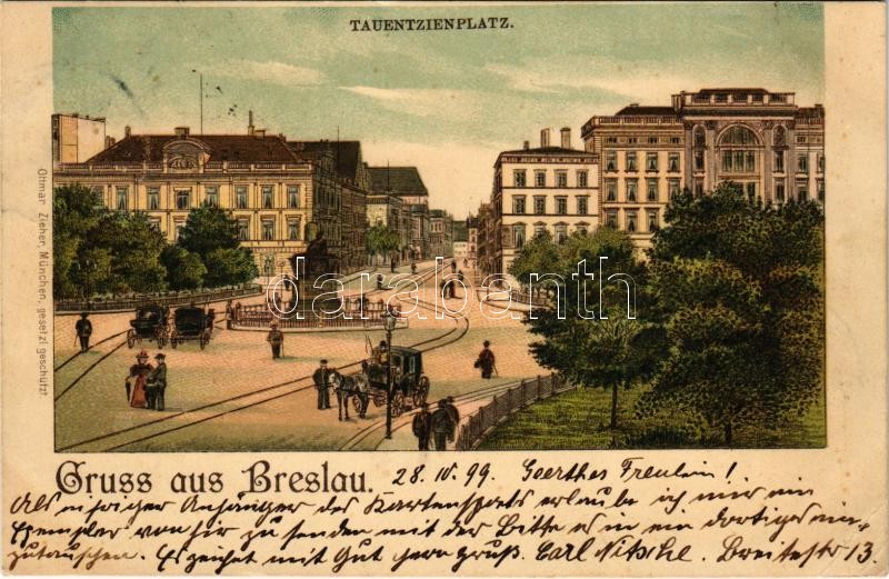 Leírás: 1899 (Vorläufer) Wroclaw, Breslau; Tauentzienplatz / square. Ottmar Zieher litho (EK)