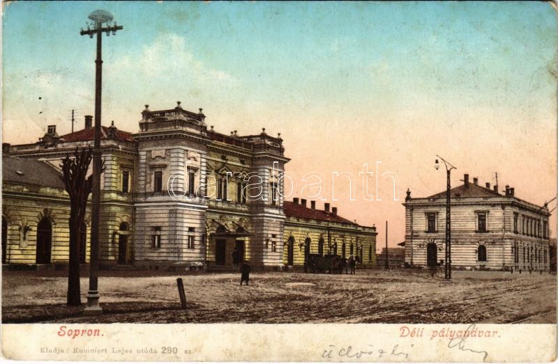 1909 Sopron, Déli pályaudvar https://www.darabanth.com/hu/402-Gyorsarveres/402.0/Kepeslapok/Magyarorszag~1000005/1909-Sopron-Deli-palyaudvar~II2471310