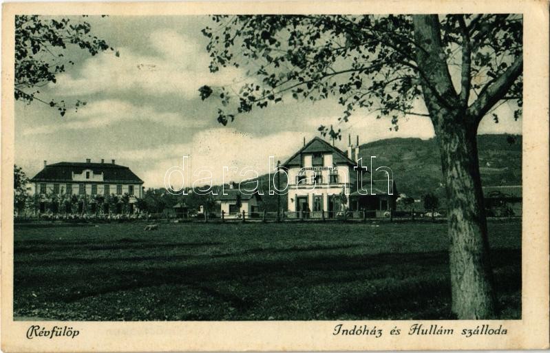 Leírás: 1927 Révfülöp, Indóház, Kővágóörs-Révfülöp vasútállomás és Hullám szálloda
