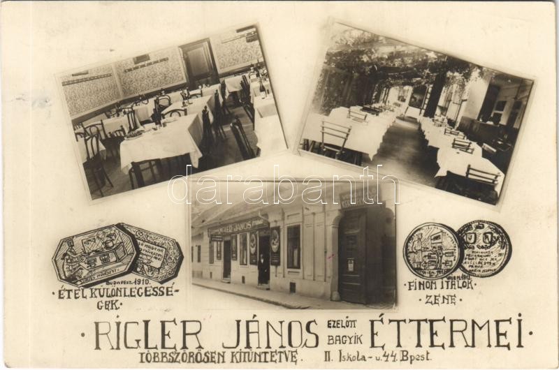 1929 Budapest I. Víziváros, Rigler János ezelőtt Bagyik éttermei, vendéglő kerthelyisége, ételkülönlegességek, finom italok és zene. Iskola utca 44. Blahos műterem photo
