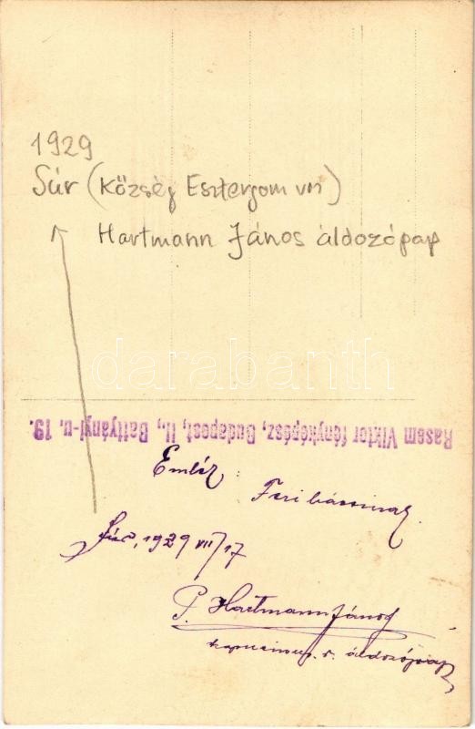 1929 Súr, Hartmann József kapucinus áldozópap. Rasem Viktor photo https://www.darabanth.com/hu/402-Gyorsarveres/402.0/Kepeslapok/Magyarorszag~1000005/1929-Sur-Hartmann-Jozsef-kapucinus-aldozopap-Rasem-Viktor-photo~II2470123