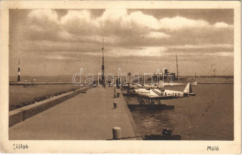 1939 Siófok, Móló, Hajóállomás, hidroplán állomás "HA-JAC" é... https://www.darabanth.com/hu/402-Gyorsarveres/402.0/Kepeslapok/Magyarorszag~1000005/1939-Siofok-Molo-Hajoallomas-hidroplan-allomas-HA-JAC-es-Junkers-hidroplan-Tisza-~II2473018