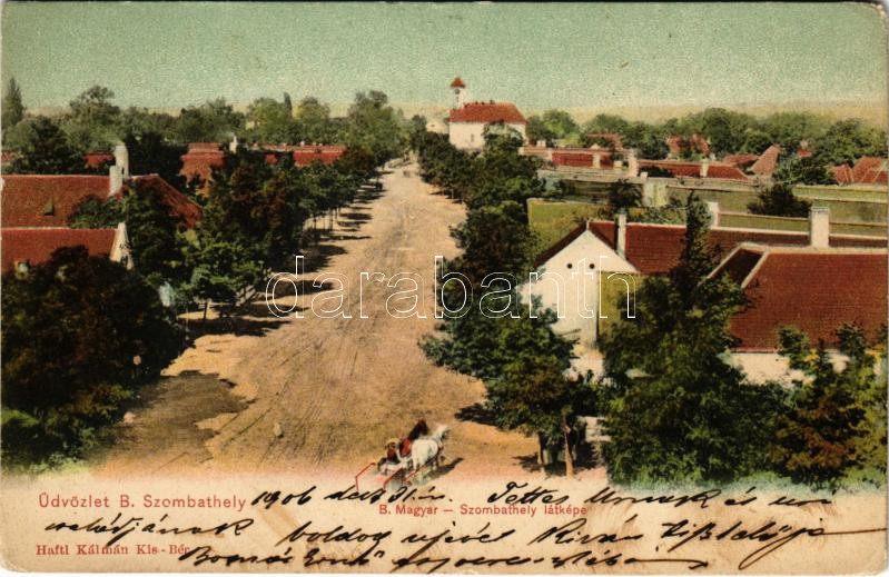 Leírás: Bakonyszombathely, látkép. Haftl Kálmán kiadása (kopott sarkak / worn corners)
