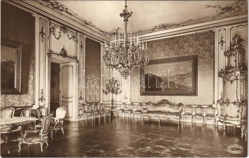 Budapest I. Királyi palota, belső, kék szalon. Csiky Foto https://www.darabanth.com/hu/402-Gyorsarveres/402.0/Kepeslapok/Magyarorszag~1000005/Budapest-I-Kiralyi-palota-belso-kek-szalon-Csiky-Foto~II2473157