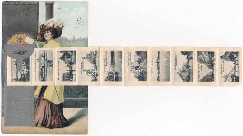 Leírás: Budapest. Leporello postaládával és hölggyel