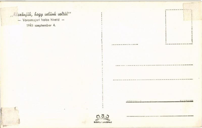 Budapest XII. Városmajor, Jézus Szíve templom. "Köszönjük, hogy velünk voltál" Városmajori hálás híveid. 1943. szeptember 4. (ragasztónyom / glue marks)