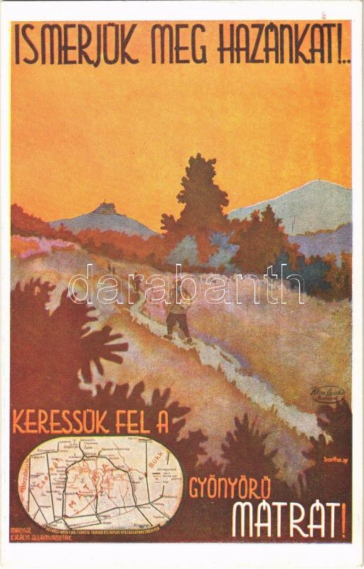 Mátra, Ismerjük meg hazánkat! Keressük fel a gyönyörű Mátrát! A Magyar Királyi Államvasutak (MÁV) turisztikai reklám képeslapja, kiadja Klösz György és Fia / Hungarian State Railways tourism campaign advertisement s: Bartha (EK)