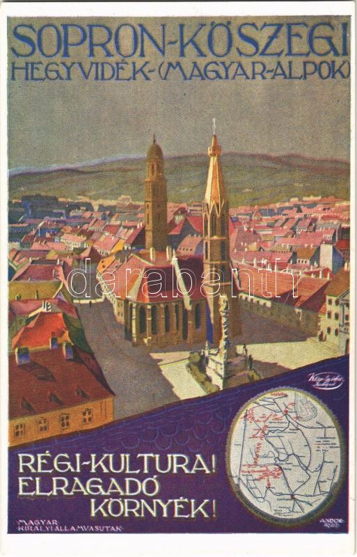 Sopron, Sopron-Kőszegi Hegyvidék (Magyar Alpok); A Magyar Királyi Államvasutak (MÁV) turisztikai reklám képeslapja, kiadja Klösz György és Fia / Hungarian State Railways tourism campaign advertisement s: Andor L. (EK)