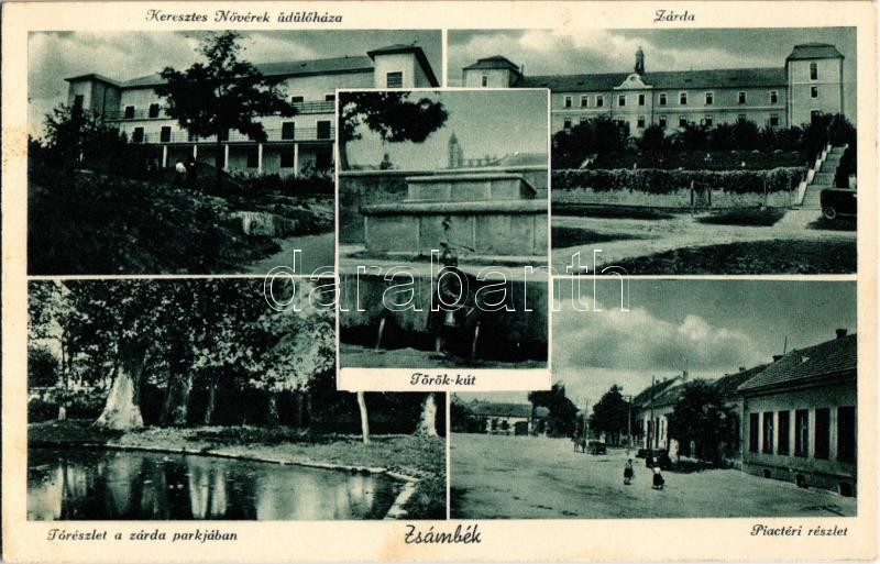 Leírás: Zsámbék, Keresztes Nővérek üdülőháza, Zárda, Tó részlet a zárda parkjában, Török kút, Piactér