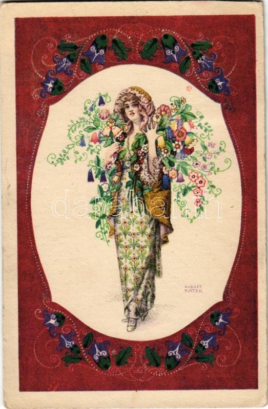 Leírás: 1920 Lady, Floral. B.K.W.I. 134-5. s: August Patek (vágott / cut)