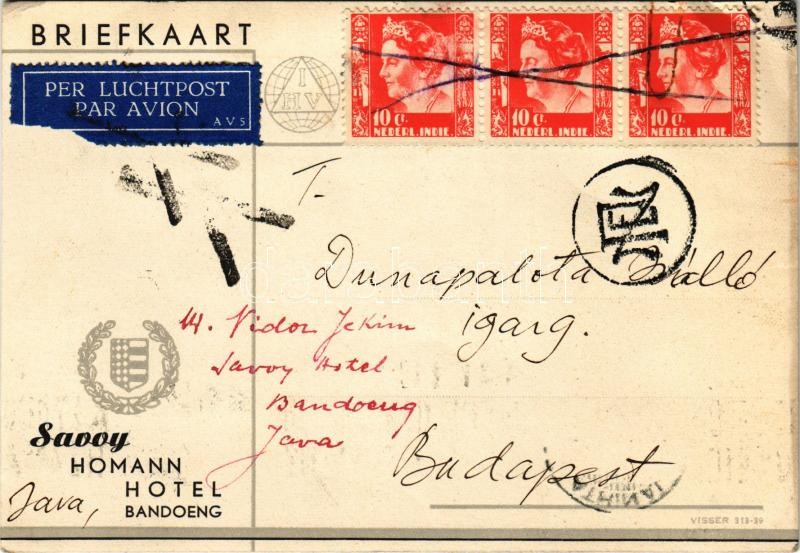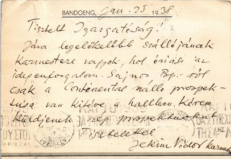 1938 Bandung, Bandoeng; Savoy Homann Hotel indonéz szálló reklámlapja. Vidor Jekim karmester levele / Indonesian hotel's advertisement, Letter of Jekim Vidor Hungarian conductor (EK)