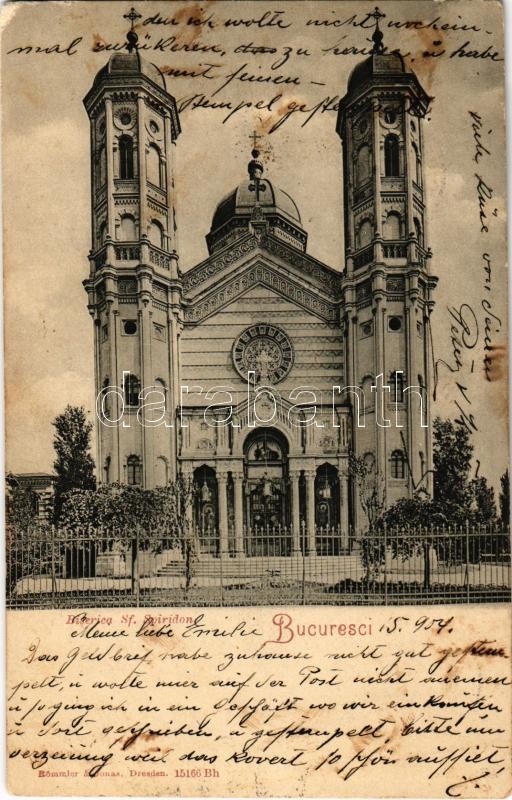 Leírás: 1904 Bucharest, Bukarest, Bucuresti, Bucuresci; Biserica Sf. Spiridon / Romanian Orthodox church. Römmler & Jonas (EK)